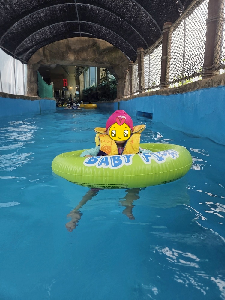 토요일 아침 11시에 입장했더니, 이때만 해도 우리 유아풀장엔 우리 가족뿐. ㅎㅎ 물놀이 좋아하는 꼬맹이들은 신이 났다. 유아풀에서 물장구치며 놀며 워밍업을 하고 나서 향한 곳은 유수풀!