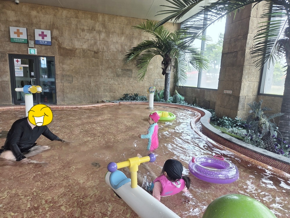 야외도 개장을 하면 슬라이드도 있고 놀거리가 더 많지만, 슬라이드 하나 못 타는 겁 많은 우리 가족에게는 있으나마나 하기에..! 저렴한 비수기가격으로 잘 놀고 왔다. 샴푸와 린스, 바디워시, 비누, 수건 등도 다 기본으로 있어서 따로 안 챙겨갔는데, 아이용 워시 제품은 챙겨갈걸 싶었다. (물론, 아예 생각도 못했지만 ㅎㅎ)
